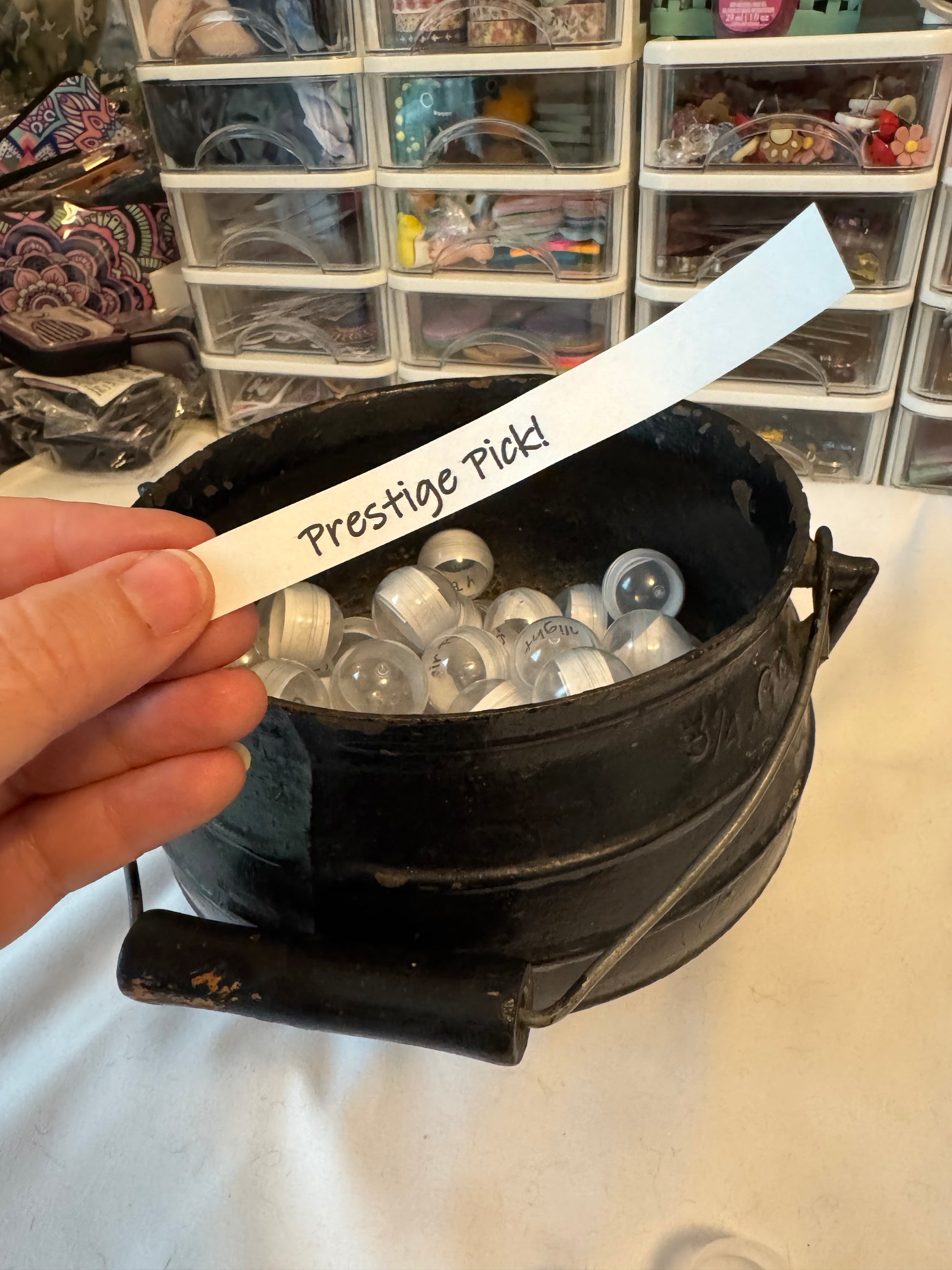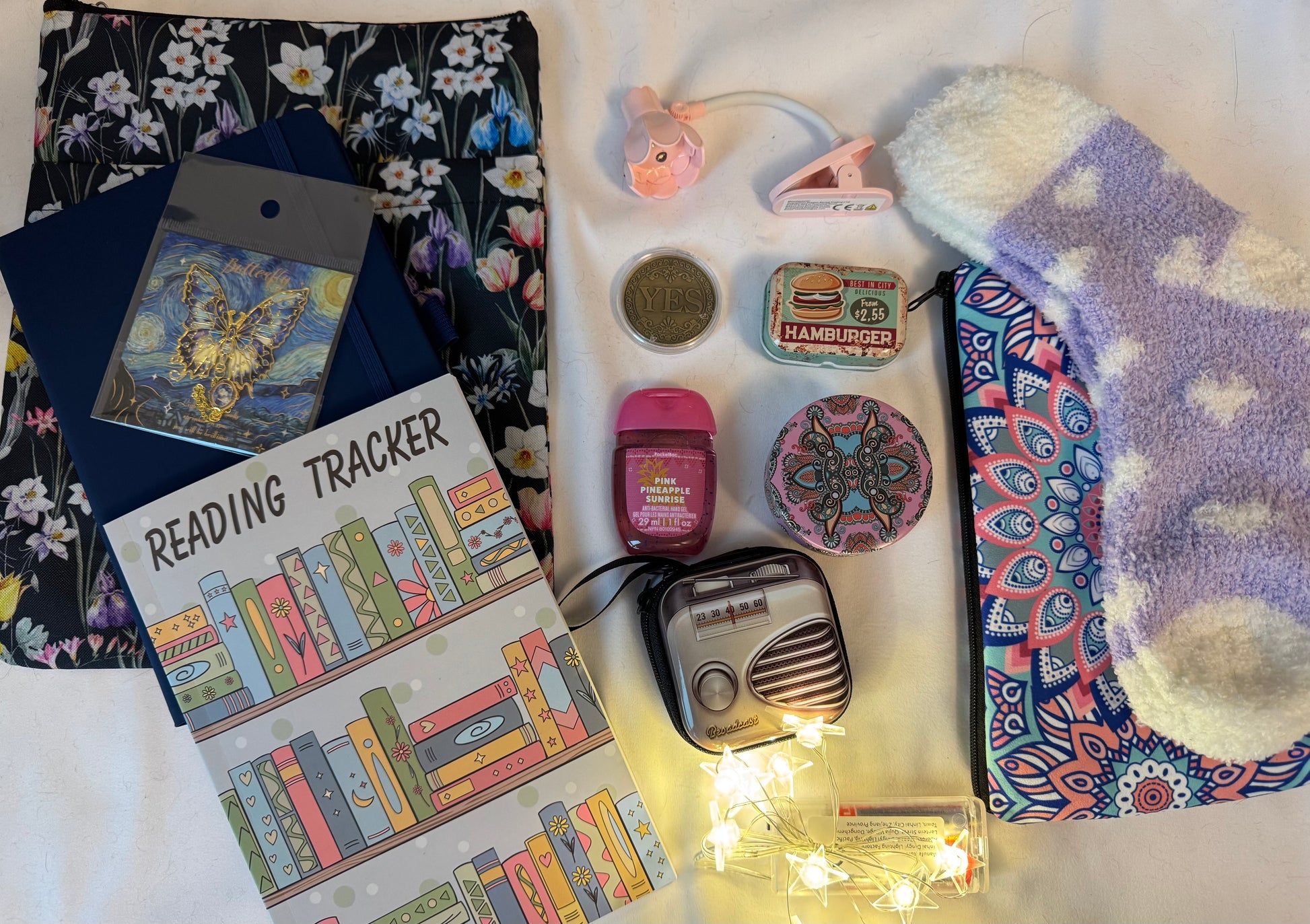 Prestige Picks are always changing but may include things like Faux Leather Journals, Candles, Book Sleeves, Vintage Tins, Hand Sanitizer, Book Lamps, Pencil Cases/Makeup Bags, Comfy Socks, Book Tracking Journal and more.